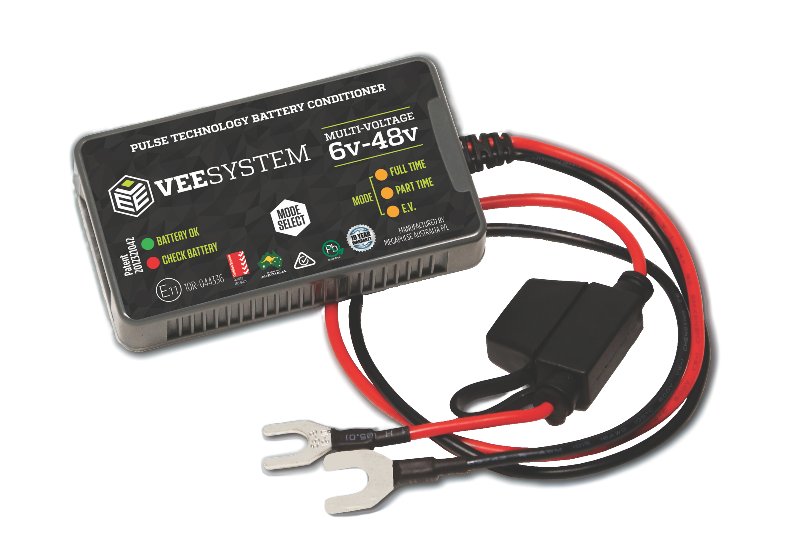 Megapulse VEES and HD648, employ a Microprocessor controlled, Patented Dual Pulse algorithm which induces 10,600 pulses per second into the battery. The first 5300 pulses of current per second are extracted from the battery after which the finely tuned Pulse Wave is created and induced back into the battery at the same rate of 5300 per second. This highly efficient dual action targets crystallized inactive material, re-energizing it back into active service leaving the battery plates clear to function at full efficiency. The High Frequency / High Intensity Bi-Directional pulses restore reliability to the battery and lift the electrical system voltage. VEES conditions up to 1500Ah of battery capacity, while HD648 conditions up to 2000Ah of battery capacity. For battery banks of higher voltage or capacity, multiple units can be installed in series configuration.